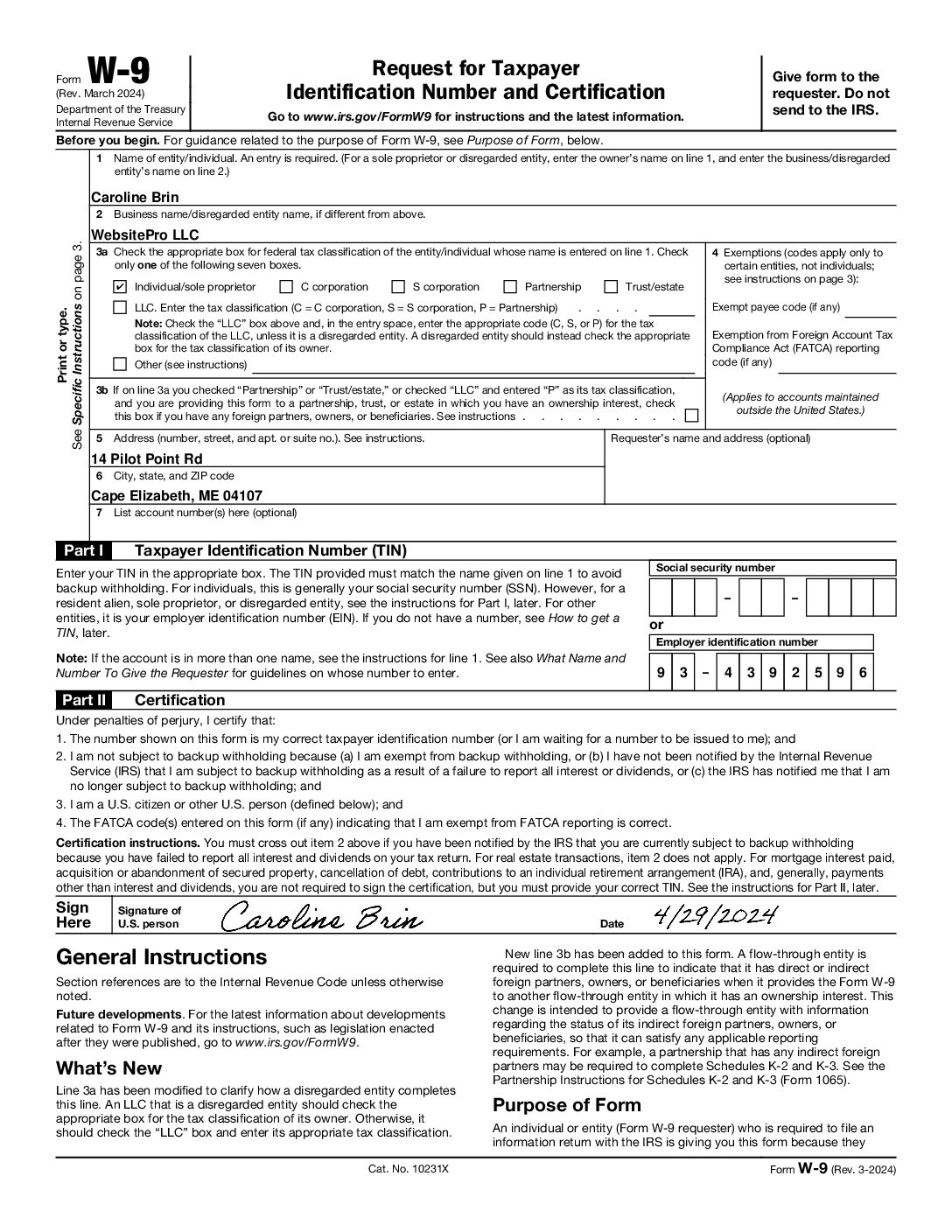 The W-9 form, officially called the “Request for Taxpayer Identification Number and Certification,” is released by the IRS. It is mainly utilized by entities to gather the required information for reporting payments made to non-employees. These payments are typically reported on a 1099 form at the end of the tax year. The W-9 form needs the specific or company to provide their name, address, and taxpayer identification number (TIN), which can be either a Social Security Number (SSN) or an Employer Identification Number (EIN).