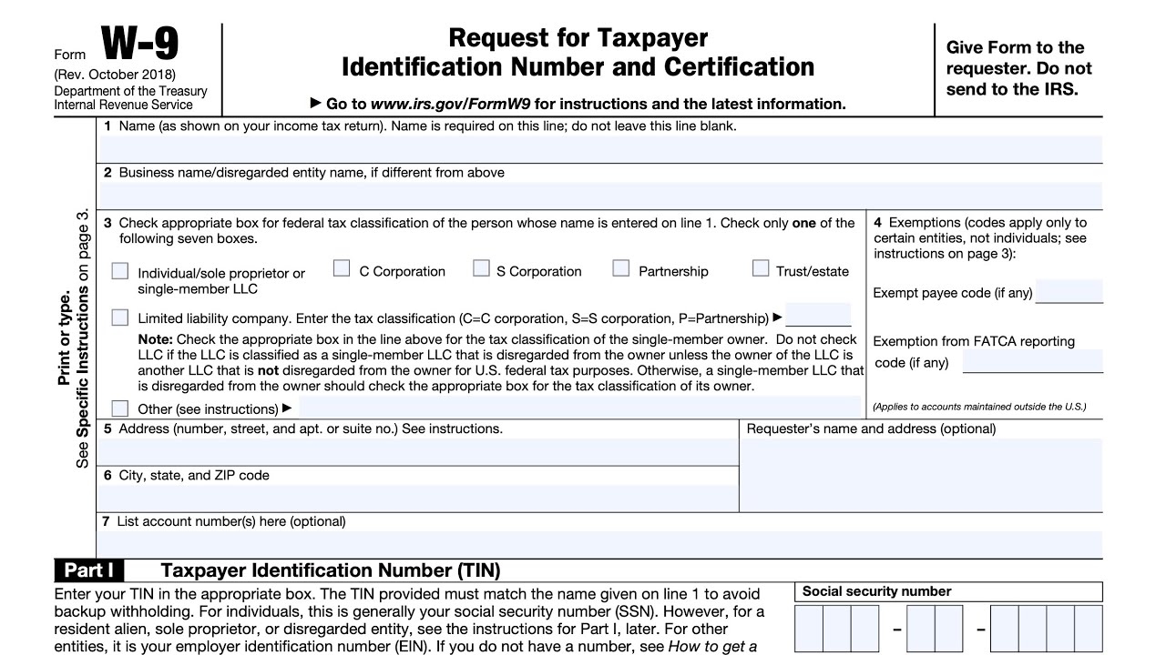 IRS Form W 9 Walkthrough Request For Taxpayer Identification Number And Certification YouTube
