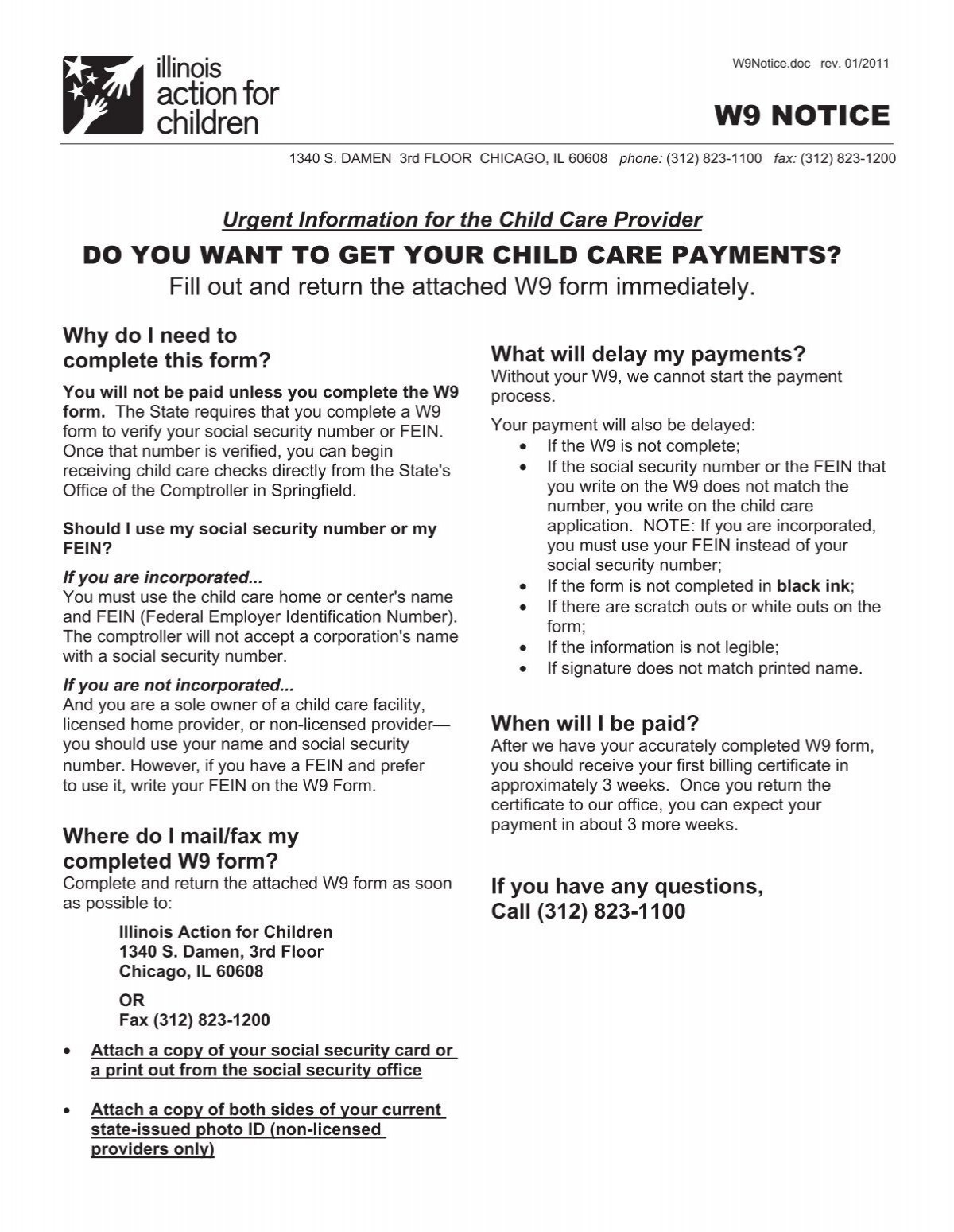 The Illinois W9 Form 2025 plays a vital function in keeping compliance with U.S. tax laws for both people and businesses. Whether you pick the printable form or the fillable form W-9, ensuring precision and security is vital. By comprehending the purpose and appropriate completion of the W-9 form, you can facilitate smooth deals and avoid prospective tax-related issues. Always consult a tax professional if you have questions or concerns relating to the W-9 form or its use Form W 9 Rev January 2011 Illinois Action For Children How To Fill Out Form W 9 YouTube 2023 2025 Form IL IL W 4 Fill Online Printable Fillable Blank PdfFiller