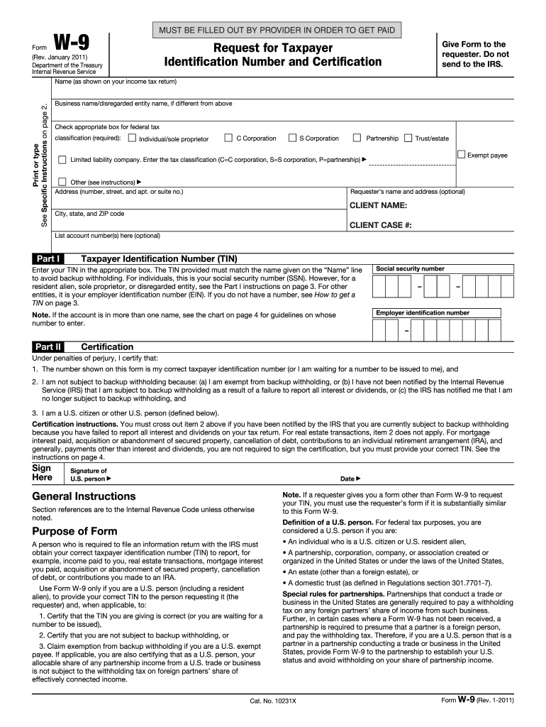 Reporting Non-Employee Compensation: Independent professionals, freelancers, and experts are typically required to complete a W-9 form when offering services to a service.