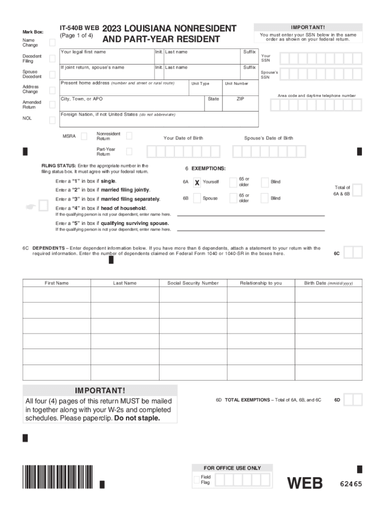 2023 2025 Form LA LDR IT 540B Fill Online Printable Fillable Blank PdfFiller