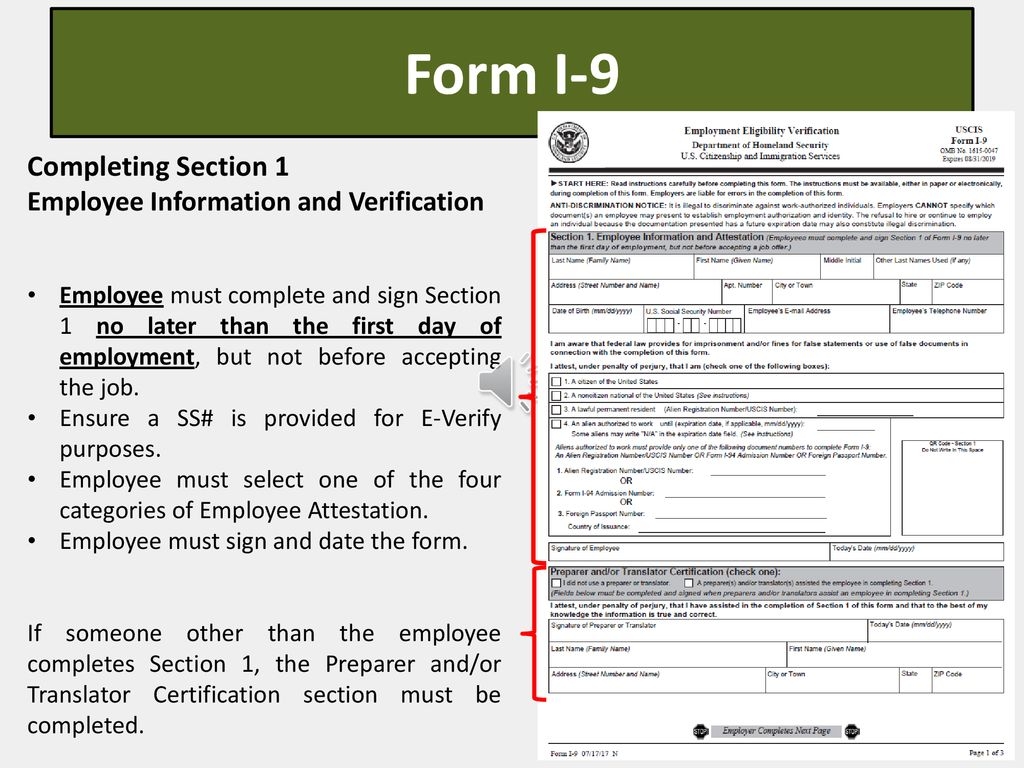 Form I 9 Employment Eligibility Verification E Verify Information Ppt Download