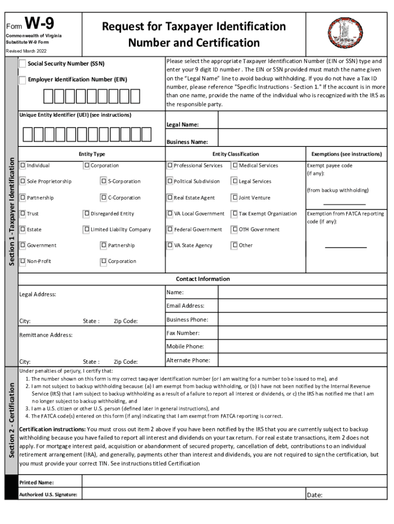 2022 2025 Form VA Substitute W 9 Fill Online Printable Fillable Blank PdfFiller